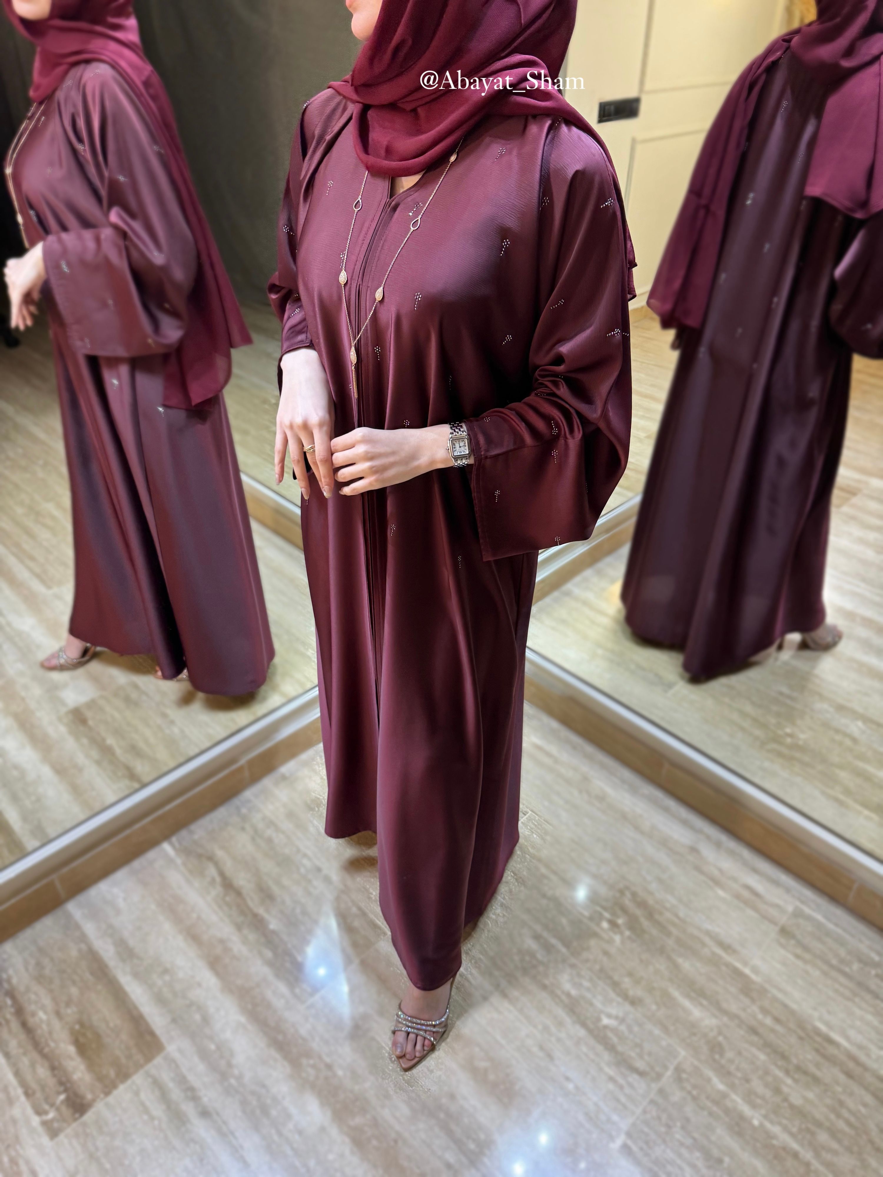 Très satisfaite de mon achat. La qualité du tissu est excellente et la coupe est vraiment élégante. L’abaya tombe parfaitement et le rendu est encore plus beau en vrai.